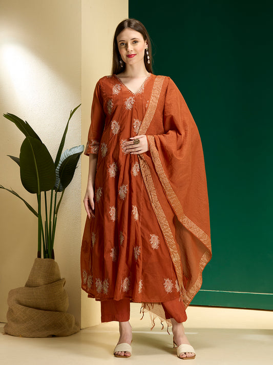 Solid Paisley Embroidered Anarkali with Pant &...