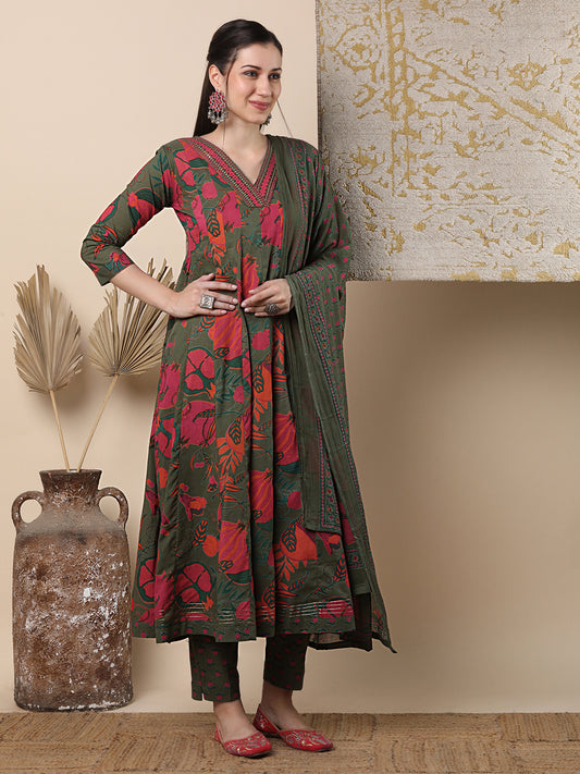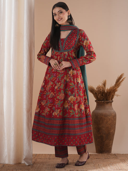 Ethnic Floral Printed & Embroidered Anarkali Flared...