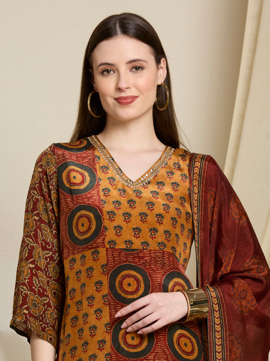 Ethnic Ajrakh Printed Straight Kurta with Pant...
