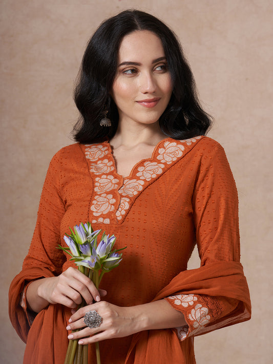 Solid Ethnic Thread & Patchwork Straight Fit...