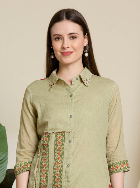 MRP (Inclusive of all taxes)Regular price ₹ 3,199.00₹ 3,199.00 Regular priceUnit price / per₹ 3,199.00Sale priceM L XL 2XL add to cart{"id":7678255693910,"title":"Solid Ethnic Thread \u0026 Patchwork Straight Fit Kurta with Pant - Light Green","handle":"solid-ethnic-thread-patchwork-straight-fit-kurta-with-pant-light-green","description":"\u003ch1\u003eHighlights\u003c\/h1\u003e\n\u003cp\u003e\u003cbr\u003e\u003cbr\u003e-Featuring a classic shirt collar and intricate ethnic threadwork combined with delicate patchwork, this ensemble blends traditional artistry with modern comfort. Paired with matching pants, it’s perfect for daytime festivities and casual elegance.\u003c\/p\u003e\n\u003ch1\u003e\n\u003cbr\u003eFabric \u0026amp; Colour\u003c\/h1\u003e\n\u003cp\u003e\u003cbr\u003eTop Colour: Green\u003cbr\u003eTop Fabric: Cotton\u003cbr\u003eBottom Colour: Green\u003cbr\u003eBottom Fabric: Cotton Blend\u003c\/p\u003e\n\u003ch1\u003eSpecifications\u003c\/h1\u003e\n\u003cp\u003e\u003cbr\u003eTop Design: Solid\u003cbr\u003eTop Craft: Embroidery, Plain and Prints\u003cbr\u003eTop Shape: Straight\u003cbr\u003eNeck: Shirt Collar\u003cbr\u003eSleeve Length: Three-Quarter Sleeves\u003cbr\u003eTop Length: Calf Length\u003cbr\u003eHemline: Straight\u003cbr\u003eSlit: Side Slits\u003c\/p\u003e\n\u003cp\u003eBottom Type: Trousers\u003cbr\u003eBottom Closure: Drawstring\u003cbr\u003eWaistband: Partially Elasticated\u003c\/p\u003e\n\u003cp\u003eWash Care: Hand Wash\u003c\/p\u003e\n\u003cp\u003eLength (in inches)\u003cbr\u003eKurta – 44, Sleeves – 16,\u003cbr\u003eBottom - 42\u003c\/p\u003e\n\u003cp\u003eModel’s Height: 5’7”. Wearing Size S.\u003c\/p\u003e\n\u003ch1\u003eProduct Information\u003c\/h1\u003e\n\u003cp\u003e\u003cbr\u003eManufactured\/Packed\/Marketed By:\u003cbr\u003eFashor Lifestyle Pvt. Ltd.\u003cbr\u003e28\/30, Sudarshanpura Industrial Area,\u003cbr\u003eJaipur - 302006.\u003cbr\u003eCountry of Origin: India\u003c\/p\u003e","published_at":"2025-10-17T12:07:41+05:30","created_at":"2025-10-17T11:31:45+05:30","vendor":"FASHOR","type":"2P Kurta Set","tags":["2XL","32663","above-3000","All Styles","casualwear","colour_Green","craft_embroidery","craft_plain-and-prints","design_solid","fabric_cotton","KURTI","kurtis","L","meta-size-chart-","now-trending","shape_straight","XL"],"price":319900,"price_min":319900,"price_max":319900,"available":true,"price_varies":false,"compare_at_price":319900,"compare_at_price_min":319900,"compare_at_price_max":319900,"compare_at_price_varies":false,"variants":[{"id":43479940989014,"title":"M","option1":"M","option2":null,"option3":null,"sku":"38-KB032663H5FS","requires_shipping":true,"taxable":false,"featured_image":{"id":35416106074198,"product_id":7678255693910,"position":1,"created_at":"2025-10-17T11:32:15+05:30","updated_at":"2025-10-17T11:32:17+05:30","alt":null,"width":1080,"height":1440,"src":"\/\/fashor.com\/cdn\/shop\/files\/32415_1.jpg?v=1760680937","variant_ids":[43479940989014,43479941021782,43479941054550,43479941087318]},"available":false,"name":"Solid Ethnic Thread \u0026 Patchwork Straight Fit Kurta with Pant - Light Green - M","public_title":"M","options":["M"],"price":319900,"weight":0,"compare_at_price":319900,"inventory_quantity":0,"inventory_management":"shopify","inventory_policy":"deny","barcode":"","featured_media":{"alt":null,"id":27523298164822,"position":1,"preview_image":{"aspect_ratio":0.75,"height":1440,"width":1080,"src":"\/\/fashor.com\/cdn\/shop\/files\/32415_1.jpg?v=1760680937"}},"requires_selling_plan":false,"selling_plan_allocations":[],"quantity_rule":{"min":1,"max":null,"increment":1}},{"id":43479941021782,"title":"L","option1":"L","option2":null,"option3":null,"sku":"40-KB032663H5FS","requires_shipping":true,"taxable":false,"featured_image":{"id":35416106074198,"product_id":7678255693910,"position":1,"created_at":"2025-10-17T11:32:15+05:30","updated_at":"2025-10-17T11:32:17+05:30","alt":null,"width":1080,"height":1440,"src":"\/\/fashor.com\/cdn\/shop\/files\/32415_1.jpg?v=1760680937","variant_ids":[43479940989014,43479941021782,43479941054550,43479941087318]},"available":true,"name":"Solid Ethnic Thread \u0026 Patchwork Straight Fit Kurta with Pant - Light Green - L","public_title":"L","options":["L"],"price":319900,"weight":0,"compare_at_price":319900,"inventory_quantity":4,"inventory_management":"shopify","inventory_policy":"deny","barcode":"","featured_media":{"alt":null,"id":27523298164822,"position":1,"preview_image":{"aspect_ratio":0.75,"height":1440,"width":1080,"src":"\/\/fashor.com\/cdn\/shop\/files\/32415_1.jpg?v=1760680937"}},"requires_selling_plan":false,"selling_plan_allocations":[],"quantity_rule":{"min":1,"max":null,"increment":1}},{"id":43479941054550,"title":"XL","option1":"XL","option2":null,"option3":null,"sku":"42-KB032663H5FS","requires_shipping":true,"taxable":false,"featured_image":{"id":35416106074198,"product_id":7678255693910,"position":1,"created_at":"2025-10-17T11:32:15+05:30","updated_at":"2025-10-17T11:32:17+05:30","alt":null,"width":1080,"height":1440,"src":"\/\/fashor.com\/cdn\/shop\/files\/32415_1.jpg?v=1760680937","variant_ids":[43479940989014,43479941021782,43479941054550,43479941087318]},"available":true,"name":"Solid Ethnic Thread \u0026 Patchwork Straight Fit Kurta with Pant - Light Green - XL","public_title":"XL","options":["XL"],"price":319900,"weight":0,"compare_at_price":319900,"inventory_quantity":4,"inventory_management":"shopify","inventory_policy":"deny","barcode":"","featured_media":{"alt":null,"id":27523298164822,"position":1,"preview_image":{"aspect_ratio":0.75,"height":1440,"width":1080,"src":"\/\/fashor.com\/cdn\/shop\/files\/32415_1.jpg?v=1760680937"}},"requires_selling_plan":false,"selling_plan_allocations":[],"quantity_rule":{"min":1,"max":null,"increment":1}},{"id":43479941087318,"title":"2XL","option1":"2XL","option2":null,"option3":null,"sku":"44-KB032663H5FS","requires_shipping":true,"taxable":false,"featured_image":{"id":35416106074198,"product_id"