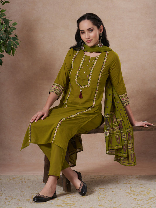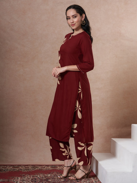 Ethnic Floral Printed & Embroidered Straight Kurta...