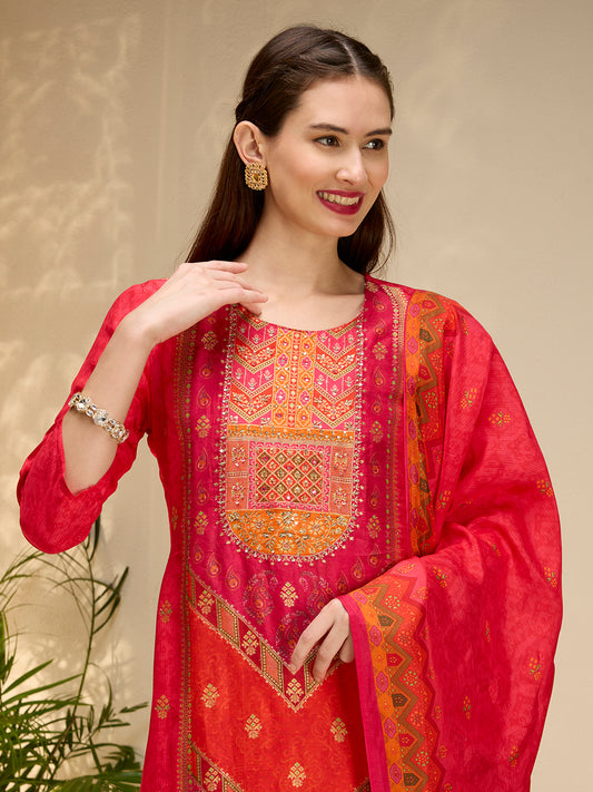 Ethnic Printed Jacquard Kurta with Pant and...