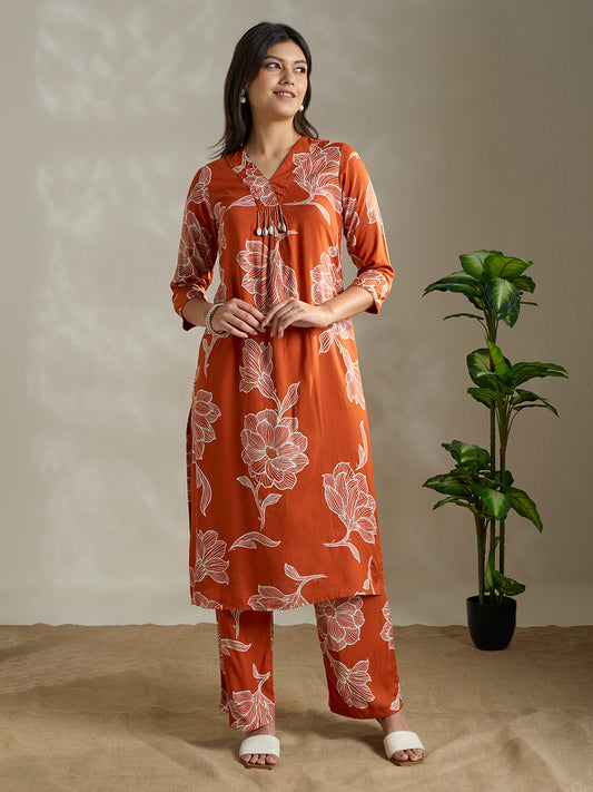 Abstract Floral Printed Straight Fit Co-ord Set...