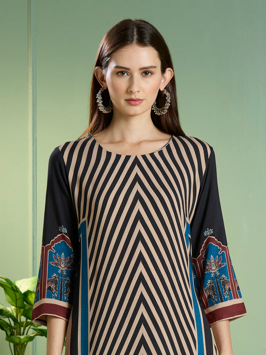 Ethnic Chevron Printed Straight Fit Kurta -...