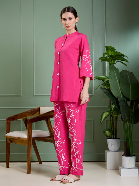 Abstract Floral Printed Straight Fit Co-ord Set...