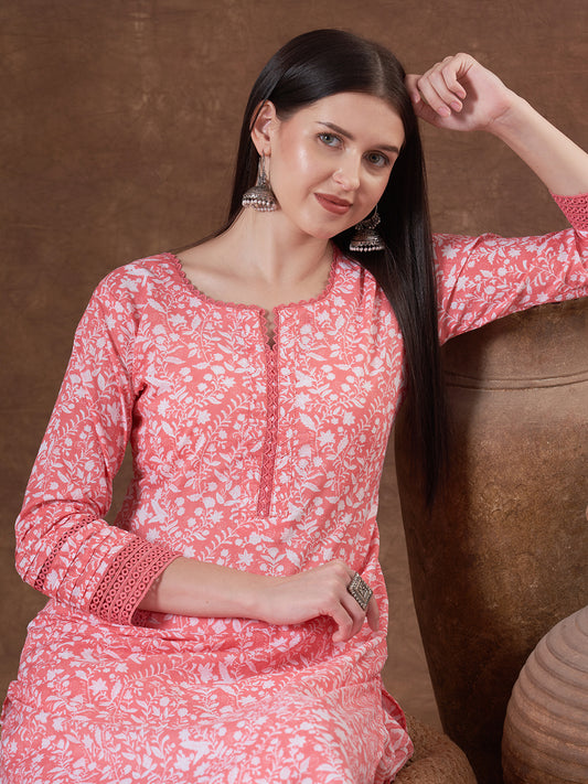 Ethnic Floral Printed A-Line Paneled Kurta with...