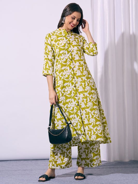 Solid Floral Embroidered Straight Fit Co-ord Set...
