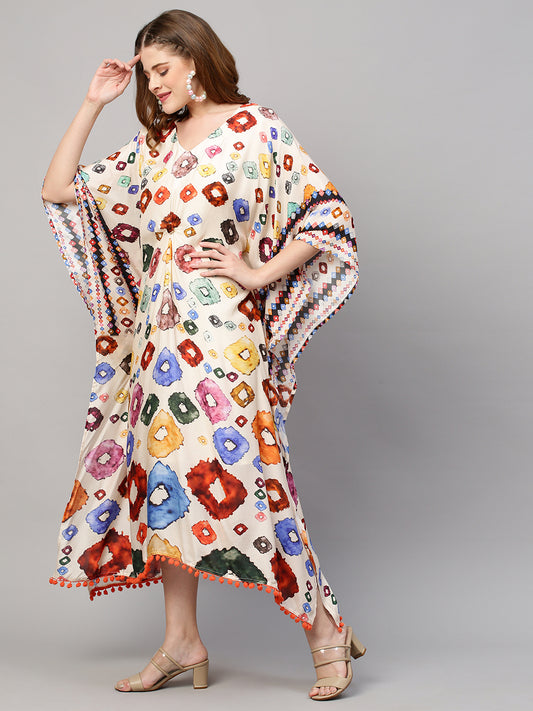 Ethnic Printed Kaftan Flared Kurta - Cream