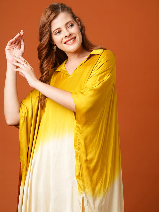 Solid Ombre Kaftan Kurta with Fringed Pant...