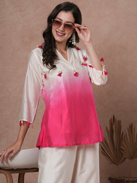 Solid Ombre A-Line Tasseled Top with Palazzo...