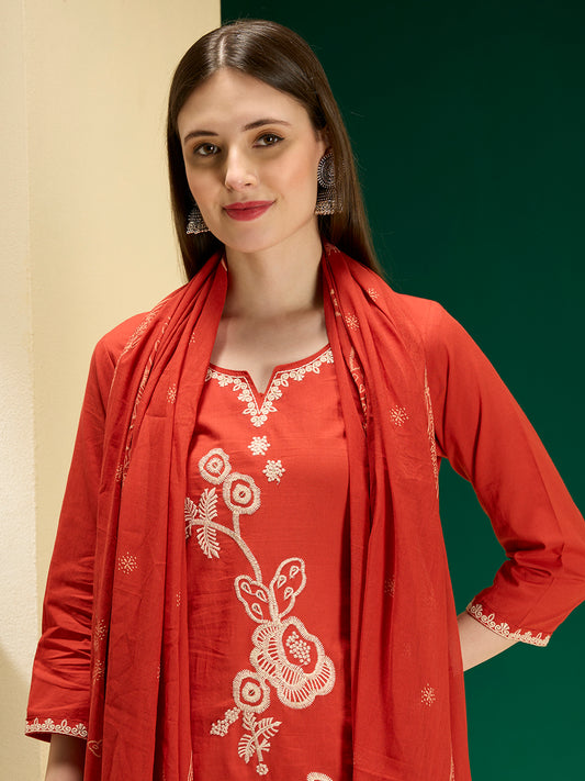 Solid Floral Embroidered A-Line Kurta with Palazzo...