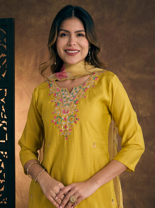 MRP (Inclusive of all taxes)Regular price ₹ 2,299.00₹ 2,299.00 Regular priceUnit price / per₹ 5,799.00Sale priceM L XL 2XL add to cartSale{"id":7725893484630,"title":"Solid Floral Embroidered Straight Kurta with Pant \u0026 Dupatta - Yellow","handle":"solid-floral-embroidered-straight-kurta-with-pant-dupatta-yellow-2","description":"\u003ch1\u003eHighlights\u003c\/h1\u003e\n\u003cp\u003e\u003cbr\u003e\u003cbr\u003e-Wrap yourself in understated festive elegance with this Solid Floral Embroidered Straight Kurta Set in sunshine yellow. Crafted in luxurious Dola silk, the kurta features a round neckline adorned with intricate floral hand-work on the yoke, lending a refined touch of artistry. Paired with shantoon solid pants for a sleek silhouette and uplifted with a whimsical organza printed dupatta, the ensemble blends grace and glamour effortlessly.\u003cbr\u003ePerfect for celebrations where sophistication and sparkle go hand in hand.\u003c\/p\u003e\n\u003ch1\u003e\n\u003cbr\u003eFabric \u0026amp; Colour\u003c\/h1\u003e\n\u003cp\u003e\u003cbr\u003eTop Colour: Yellow\u003cbr\u003eTop Fabric: Dola Silk\u003cbr\u003eBottom Colour: Yellow\u003cbr\u003eBottom Fabric: Shantoon\u003cbr\u003eDupatta Colour: Yellow\u003cbr\u003eDupatta Fabric: Organza\u003c\/p\u003e\n\u003ch1\u003eSpecifications\u003c\/h1\u003e\n\u003cp\u003e\u003cbr\u003eTop Design: Solid\u003cbr\u003eTop Craft: Embroidery, Plain and Prints\u003cbr\u003eTop Shape: Straight\u003cbr\u003eNeck: Round Neck\u003cbr\u003eSleeve Length: Three-Quarter Sleeves\u003cbr\u003eTop Length: Calf Length\u003cbr\u003eHemline: Straight\u003cbr\u003eSlit: Side Slits\u003c\/p\u003e\n\u003cp\u003eBottom Type: Trousers\u003cbr\u003eBottom Closure: Slip-On\u003cbr\u003eWaistband: Partially Elasticated\u003c\/p\u003e\n\u003cp\u003eDupatta Pattern: Printed\u003cbr\u003eDupatta Border: Printed\u003c\/p\u003e\n\u003cp\u003eWash Care: Hand Wash\u003c\/p\u003e\n\u003cp\u003eLength (in inches)\u003cbr\u003eKurta – 45, Sleeves – 17,\u003cbr\u003eBottom – 42\u003c\/p\u003e\n\u003cp\u003eModel’s Height: 5’7”. Wearing Size S.\u003c\/p\u003e\n\u003ch1\u003eProduct Information\u003c\/h1\u003e\n\u003cp\u003e\u003cbr\u003eManufactured\/Packed\/Marketed By:\u003cbr\u003eFashor Lifestyle Pvt. Ltd.\u003cbr\u003e28\/30, Sudarshanpura Industrial Area,\u003cbr\u003eJaipur - 302006.\u003cbr\u003eCountry of Origin: India\u003c\/p\u003e","published_at":"2025-12-04T14:22:00+05:30","created_at":"2025-12-04T13:26:22+05:30","vendor":"FASHOR","type":"3P Kurta Set","tags":["2001-3000","2XL","33809","All Styles","casualwear","colour_yellow","craft_embroidery","craft_plain-and-prints","design_solid","fabric_dola-silk","KURTI","kurtis","L","M","meta-size-chart-","now-trending","shape_straight","XL"],"price":229900,"price_min":229900,"price_max":229900,"available":true,"price_varies":false,"compare_at_price":579900,"compare_at_price_min":579900,"compare_at_price_max":579900,"compare_at_price_varies":false,"variants":[{"id":43701358329942,"title":"M","option1":"M","option2":null,"option3":null,"sku":"38-STB33809K5FS","requires_shipping":true,"taxable":true,"featured_image":{"id":35803548942422,"product_id":7725893484630,"position":3,"created_at":"2025-12-04T13:27:00+05:30","updated_at":"2025-12-04T13:28:15+05:30","alt":null,"width":1080,"height":1440,"src":"\/\/fashor.com\/cdn\/shop\/files\/32834_1.jpg?v=1764835095","variant_ids":[43701358329942,43701358362710,43701358395478,43701358428246]},"available":true,"name":"Solid Floral Embroidered Straight Kurta with Pant \u0026 Dupatta - Yellow - M","public_title":"M","options":["M"],"price":229900,"weight":0,"compare_at_price":579900,"inventory_quantity":5,"inventory_management":"shopify","inventory_policy":"deny","barcode":"","featured_media":{"alt":null,"id":27883717754966,"position":3,"preview_image":{"aspect_ratio":0.75,"height":1440,"width":1080,"src":"\/\/fashor.com\/cdn\/shop\/files\/32834_1.jpg?v=1764835095"}},"requires_selling_plan":false,"selling_plan_allocations":[],"quantity_rule":{"min":1,"max":null,"increment":1}},{"id":43701358362710,"title":"L","option1":"L","option2":null,"option3":null,"sku":"40-STB33809K5FS","requires_shipping":true,"taxable":true,"featured_image":{"id":35803548942422,"product_id":7725893484630,"position":3,"created_at":"2025-12-04T13:27:00+05:30","updated_at":"2025-12-04T13:28:15+05:30","alt":null,"width":1080,"height":1440,"src":"\/\/fashor.com\/cdn\/shop\/files\/32834_1.jpg?v=1764835095","variant_ids":[43701358329942,43701358362710,43701358395478,43701358428246]},"available":true,"name":"Solid Floral Embroidered Straight Kurta with Pant \u0026 Dupatta - Yellow - L","public_title":"L","options":["L"],"price":229900,"weight":0,"compare_at_price":579900,"inventory_quantity":7,"inventory_management":"shopify","inventory_policy":"deny","barcode":"","featured_media":{"alt":null,"id":27883717754966,"position":3,"preview_image":{"aspect_ratio":0.75,"height":1440,"width":1080,"src":"\/\/fashor.com\/cdn\/shop\/files\/32834_1.jpg?v=1764835095"}},"requires_selling_plan":false,"selling_plan_allocations":[],"quantity_rule":{"min":1,"max":null,"increment":1}},{"id":43701358395478,"title":"XL","option1":"XL","option2":null,"option3":null,"sku":"42-STB33809K5FS","requires_shipping":true,"taxable":true,"featured_image":{"id":35803548942422,"product_id":7725893484630,"position":3,"created_at":"2025-12-04T13:27:00+05:30","updated_at":"2025-12-04T13:28:15+05:30","alt":null,"width":1080,"height":1440,"src":"\/\/fashor.com\/cdn\/shop\/files\/32834_1.jpg?v=1764835095","variant_ids":[43701358329942,43701358362710,43701358395478,43701358428246]},"available":true,"name":"Solid Floral Embroidered Straight Kurta with Pant \u0026 Dupatta - Yellow - XL","public_title":"XL","options":["XL"],"price":229900,"weight":0,"compare_at_price":579900,"inventory_quantity":7,"inventory_management":"shopify","inventory_policy":"deny","barcode":"","featured_media":{"alt":null,"id":27883717754966,"position":3,"preview_image":{"asp