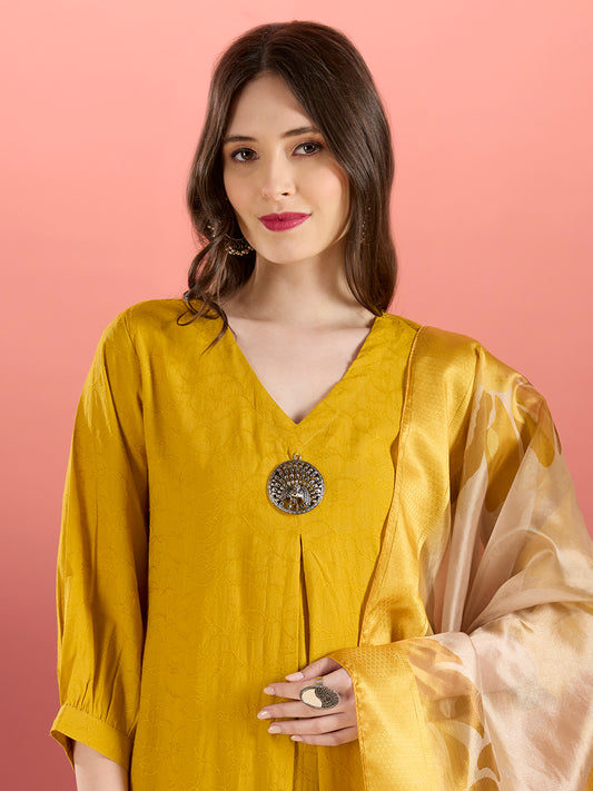 MRP (Inclusive of all taxes)Regular price ₹ 2,499.00₹ 2,499.00 Regular priceUnit price / per₹ 6,399.00Sale priceM L XL 2XL 3XL add to cartSale{"id":7714868559958,"title":"Solid Floral Embroidered A-Line Kurta with Palazzo and Dupatta - Mustard","handle":"solid-floral-embroidered-a-line-kurta-with-palazzo-and-dupatta-mustard","description":"\u003ch1\u003eHighlights\u003c\/h1\u003e\n\u003cp\u003e\u003cbr\u003e\u003cbr\u003e-A radiant ensemble that blends richness with refined elegance. Crafted from a luxurious silk-blend fabric, the A-line kurta features delicate floral embroidery and a flattering V-neckline. Paired with sleek solid palazzos for effortless grace and a beautifully printed dupatta that adds a splash of artistry, this set brings together tradition and contemporary charm in the most stunning way.\u003c\/p\u003e\n\u003ch1\u003e\n\u003cbr\u003eFabric \u0026amp; Colour\u003c\/h1\u003e\n\u003cp\u003e\u003cbr\u003eTop Colour: Mustard\u003cbr\u003eTop Fabric: Silk Blend\u003cbr\u003eBottom Colour: Mustard\u003cbr\u003eBottom Fabric: Muslin Silk\u003cbr\u003eDupatta Colour: Mustard\u003cbr\u003eDupatta Fabric: Organza\u003c\/p\u003e\n\u003ch1\u003eSpecifications\u003c\/h1\u003e\n\u003cp\u003e\u003cbr\u003eTop Design: Solid\u003cbr\u003eTop Craft: Plain and Prints\u003cbr\u003eTop Shape: A-line\u003cbr\u003eNeck: V-Neck\u003cbr\u003eSleeve Length: Three-Quarter Sleeves\u003cbr\u003eTop Length: Calf Length\u003cbr\u003eHemline: Flared\u003cbr\u003e\u003c\/p\u003e\n\u003cp\u003eBottom Type: Palazzos\u003cbr\u003eBottom Closure: Slip-On\u003cbr\u003eWaistband: Elasticated\u003c\/p\u003e\n\u003cp\u003eDupatta Pattern: Printed\u003cbr\u003eDupatta Border: Tassels\u003c\/p\u003e\n\u003cp\u003eWash Care: Hand Wash\u003c\/p\u003e\n\u003cp\u003eLength (in inches)\u003cbr\u003eKurta – 44, Sleeves – 17,\u003cbr\u003eBottom – 40\u003c\/p\u003e\n\u003cp\u003eModel’s Height: 5’7”. Wearing Size S.\u003c\/p\u003e\n\u003ch1\u003eProduct Information\u003c\/h1\u003e\n\u003cp\u003e\u003cbr\u003eManufactured\/Packed\/Marketed By:\u003cbr\u003eFashor Lifestyle Pvt. Ltd.\u003cbr\u003e28\/30, Sudarshanpura Industrial Area,\u003cbr\u003eJaipur - 302006.\u003cbr\u003eCountry of Origin: India\u003c\/p\u003e","published_at":"2025-11-26T12:29:44+05:30","created_at":"2025-11-21T11:46:48+05:30","vendor":"FASHOR","type":"3P Kurta Set","tags":["2001-3000","2XL","33580","3XL","All Styles","colour_mustard","craft_plain-and-prints","design_solid","fabric_silk-blend","KURTI","kurtis","L","M","meta-size-chart-","now-trending","occasionwear","shape_a-line","XL"],"price":249900,"price_min":249900,"price_max":249900,"available":true,"price_varies":false,"compare_at_price":639900,"compare_at_price_min":639900,"compare_at_price_max":639900,"compare_at_price_varies":false,"variants":[{"id":43663221850198,"title":"M","option1":"M","option2":null,"option3":null,"sku":"38-ST033580J5FS","requires_shipping":true,"taxable":true,"featured_image":{"id":35687001718870,"product_id":7714868559958,"position":1,"created_at":"2025-11-21T11:47:17+05:30","updated_at":"2025-11-21T11:47:19+05:30","alt":null,"width":1080,"height":1440,"src":"\/\/fashor.com\/cdn\/shop\/files\/32800_1.jpg?v=1763705839","variant_ids":[43663221850198,43663221882966,43663221915734,43663221948502,43663221981270]},"available":true,"name":"Solid Floral Embroidered A-Line Kurta with Palazzo and Dupatta - Mustard - M","public_title":"M","options":["M"],"price":249900,"weight":0,"compare_at_price":639900,"inventory_quantity":2,"inventory_management":"shopify","inventory_policy":"deny","barcode":"","featured_media":{"alt":null,"id":27770392641622,"position":1,"preview_image":{"aspect_ratio":0.75,"height":1440,"width":1080,"src":"\/\/fashor.com\/cdn\/shop\/files\/32800_1.jpg?v=1763705839"}},"requires_selling_plan":false,"selling_plan_allocations":[],"quantity_rule":{"min":1,"max":null,"increment":1}},{"id":43663221882966,"title":"L","option1":"L","option2":null,"option3":null,"sku":"40-ST033580J5FS","requires_shipping":true,"taxable":true,"featured_image":{"id":35687001718870,"product_id":7714868559958,"position":1,"created_at":"2025-11-21T11:47:17+05:30","updated_at":"2025-11-21T11:47:19+05:30","alt":null,"width":1080,"height":1440,"src":"\/\/fashor.com\/cdn\/shop\/files\/32800_1.jpg?v=1763705839","variant_ids":[43663221850198,43663221882966,43663221915734,43663221948502,43663221981270]},"available":true,"name":"Solid Floral Embroidered A-Line Kurta with Palazzo and Dupatta - Mustard - L","public_title":"L","options":["L"],"price":249900,"weight":0,"compare_at_price":639900,"inventory_quantity":5,"inventory_management":"shopify","inventory_policy":"deny","barcode":"","featured_media":{"alt":null,"id":27770392641622,"position":1,"preview_image":{"aspect_ratio":0.75,"height":1440,"width":1080,"src":"\/\/fashor.com\/cdn\/shop\/files\/32800_1.jpg?v=1763705839"}},"requires_selling_plan":false,"selling_plan_allocations":[],"quantity_rule":{"min":1,"max":null,"increment":1}},{"id":43663221915734,"title":"XL","option1":"XL","option2":null,"option3":null,"sku":"42-ST033580J5FS","requires_shipping":true,"taxable":true,"featured_image":{"id":35687001718870,"product_id":7714868559958,"position":1,"created_at":"2025-11-21T11:47:17+05:30","updated_at":"2025-11-21T11:47:19+05:30","alt":null,"width":1080,"height":1440,"src":"\/\/fashor.com\/cdn\/shop\/files\/32800_1.jpg?v=1763705839","variant_ids":[43663221850198,43663221882966,43663221915734,43663221948502,43663221981270]},"available":true,"name":"Solid Floral Embroidered A-Line Kurta with Palazzo and Dupatta - Mustard - XL","public_title":"XL","options":["XL"],"price":249900,"weight":0,"compare_at_price":639900,"inventory_quantity":4,"inventory_management":"shopify","inventory_policy":"deny","barcode":"","featured_media":{"alt":null,"id":27770392641622,"position":1,"preview_image":{"aspect_ratio":0.75,"height":1440,"width":1080,"src":"\/\/fashor.com\/cdn\/shop\/files\/32800_1.jpg?v=1763705839"}},"requires_selling_plan":f