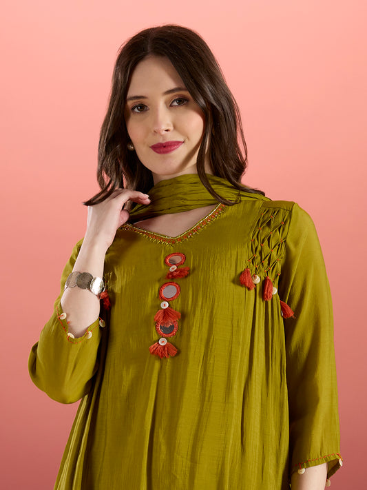 Solid Mirror Work A-Line Kurta with Palazzo...