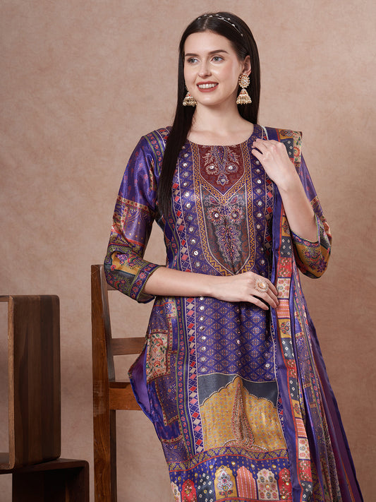 MRP (Inclusive of all taxes)Regular price ₹ 2,599.00₹ 2,599.00 Regular priceUnit price / per₹ 2,599.00Sale priceM L XL 2XL 3XL add to cart{"id":7591154778198,"title":"Ethnic Printed \u0026 Hand Embroidered Straight Kurta with Pant \u0026 Dupatta - Purple","handle":"ethnic-printed-hand-embroidered-straight-kurta-with-pant-dupatta-purple-1","description":"\u003ch1\u003eHighlights\u003c\/h1\u003e\n\u003cp\u003e\u003cbr\u003e-Straight Fit Kurta\u003cbr\u003e-Ethnic Embroidered at Front\u003cbr\u003e-Comes with Ethnic Printed Dupatta\u003c\/p\u003e\n\u003ch1\u003eFabric \u0026amp; Colour\u003c\/h1\u003e\n\u003cp\u003e\u003cbr\u003eTop Colour: Purple\u003cbr\u003eTop Fabric: Satin\u003cbr\u003eBottom Colour: Purple\u003cbr\u003eBottom Fabric: Shantoon\u003cbr\u003eDupatta Colour: Purple\u003cbr\u003eDupatta Fabric: Satin\u003c\/p\u003e\n\u003ch1\u003eSpecifications\u003c\/h1\u003e\n\u003cp\u003e\u003cbr\u003eTop Design: Floral print, Ethnic print\u003cbr\u003eTop Craft: Sequins, Embroidery, Plain and Prints\u003cbr\u003eTop Shape: Straight\u003cbr\u003eNeck: Round Neck\u003cbr\u003eSleeve Length: Three-Quarter Sleeves\u003cbr\u003eTop Length: Knee Length\u003cbr\u003eHemline: Straight\u003cbr\u003eSlit: Side Slits\u003c\/p\u003e\n\u003cp\u003eBottom Type: Trousers\u003cbr\u003eBottom Closure: Slip-On\u003cbr\u003eWaistband: Elasticated\u003c\/p\u003e\n\u003cp\u003eDupatta Pattern: Printed\u003cbr\u003eDupatta Border: Printed\u003c\/p\u003e\n\u003cp\u003eWash Care: Dry Clean\u003c\/p\u003e\n\u003cp\u003eLength (in inches)\u003cbr\u003eKurta – 47, Sleeves – 18,\u003cbr\u003eBottom – 36\u003c\/p\u003e\n\u003cp\u003eModel’s Height: 5’7”. Wearing Size S.\u003c\/p\u003e\n\u003ch1\u003eProduct Information\u003c\/h1\u003e\n\u003cp\u003e\u003cbr\u003eManufactured\/Packed\/Marketed By:\u003cbr\u003eFashor Lifestyle Pvt. Ltd.\u003cbr\u003e28\/30, Sudarshanpura Industrial Area,\u003cbr\u003eJaipur - 302006.\u003cbr\u003eCountry of Origin: India\u003c\/p\u003e","published_at":"2025-11-25T10:21:06+05:30","created_at":"2025-07-17T16:28:48+05:30","vendor":"FASHOR","type":"3P Kurta Set","tags":["2001-3000","25649","3XL","All Styles","colour_purple","craft_embroidery","craft_plain-and-prints","craft_sequins","design_ethnic-print","design_floral-print","fabric_satin","Festive Favourites","festivewear","KURTI","kurtis","meta-size-chart-","now-trending","occasionwear","rakhi","rakhi-favourites","shape_straight"],"price":259900,"price_min":259900,"price_max":259900,"available":true,"price_varies":false,"compare_at_price":259900,"compare_at_price_min":259900,"compare_at_price_max":259900,"compare_at_price_varies":false,"variants":[{"id":42480027926614,"title":"M","option1":"M","option2":null,"option3":null,"sku":"38-ST025649H4FS","requires_shipping":true,"taxable":false,"featured_image":{"id":34687547768918,"product_id":7591154778198,"position":3,"created_at":"2025-07-17T16:29:20+05:30","updated_at":"2025-07-17T16:30:38+05:30","alt":null,"width":1080,"height":1440,"src":"\/\/fashor.com\/cdn\/shop\/files\/31500_8.jpg?v=1752750038","variant_ids":[42480027926614,42480027959382,42480027992150,42480028024918,42480028057686]},"available":false,"name":"Ethnic Printed \u0026 Hand Embroidered Straight Kurta with Pant \u0026 Dupatta - Purple - M","public_title":"M","options":["M"],"price":259900,"weight":0,"compare_at_price":259900,"inventory_quantity":0,"inventory_management":"shopify","inventory_policy":"deny","barcode":"","featured_media":{"alt":null,"id":26951204929622,"position":3,"preview_image":{"aspect_ratio":0.75,"height":1440,"width":1080,"src":"\/\/fashor.com\/cdn\/shop\/files\/31500_8.jpg?v=1752750038"}},"requires_selling_plan":false,"selling_plan_allocations":[],"quantity_rule":{"min":1,"max":null,"increment":1}},{"id":42480027959382,"title":"L","option1":"L","option2":null,"option3":null,"sku":"40-ST025649H4FS","requires_shipping":true,"taxable":false,"featured_image":{"id":34687547768918,"product_id":7591154778198,"position":3,"created_at":"2025-07-17T16:29:20+05:30","updated_at":"2025-07-17T16:30:38+05:30","alt":null,"width":1080,"height":1440,"src":"\/\/fashor.com\/cdn\/shop\/files\/31500_8.jpg?v=1752750038","variant_ids":[42480027926614,42480027959382,42480027992150,42480028024918,42480028057686]},"available":false,"name":"Ethnic Printed \u0026 Hand Embroidered Straight Kurta with Pant \u0026 Dupatta - Purple - L","public_title":"L","options":["L"],"price":259900,"weight":0,"compare_at_price":259900,"inventory_quantity":0,"inventory_management":"shopify","inventory_policy":"deny","barcode":"","featured_media":{"alt":null,"id":26951204929622,"position":3,"preview_image":{"aspect_ratio":0.75,"height":1440,"width":1080,"src":"\/\/fashor.com\/cdn\/shop\/files\/31500_8.jpg?v=1752750038"}},"requires_selling_plan":false,"selling_plan_allocations":[],"quantity_rule":{"min":1,"max":null,"increment":1}},{"id":42480027992150,"title":"XL","option1":"XL","option2":null,"option3":null,"sku":"42-ST025649H4FS","requires_shipping":true,"taxable":false,"featured_image":{"id":34687547768918,"product_id":7591154778198,"position":3,"created_at":"2025-07-17T16:29:20+05:30","updated_at":"2025-07-17T16:30:38+05:30","alt":null,"width":1080,"height":1440,"src":"\/\/fashor.com\/cdn\/shop\/files\/31500_8.jpg?v=1752750038","variant_ids":[42480027926614,42480027959382,42480027992150,42480028024918,42480028057686]},"available":false,"name":"Ethnic Printed \u0026 Hand Embroidered Straight Kurta with Pant \u0026 Dupatta - Purple - XL","public_title":"XL","options":["XL"],"price":259900,"weight":0,"compare_at_price":259900,"inventory_quantity":0,"inventory_management":"shopify","inventory_policy":"deny","barcode":"","featured_media":{"alt":null,"id":26951204929622,"position":3,"preview_image":{"aspect_ratio":0.75,"height":1440,"width":1080,"src":"\/\/fashor.com\/cdn\/shop\/files\/31500_8.jpg?v=1752750038"}},"requires_selling_plan":false,"selling_plan_allocations":[],"quantity_rule":{"min":1,"max":null,"increment":1}},{"id":