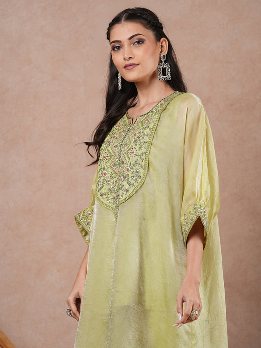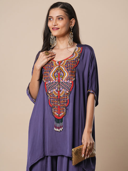 Solid Ethnic Hand Embroidered Kaftan Kurta Co-ord...
