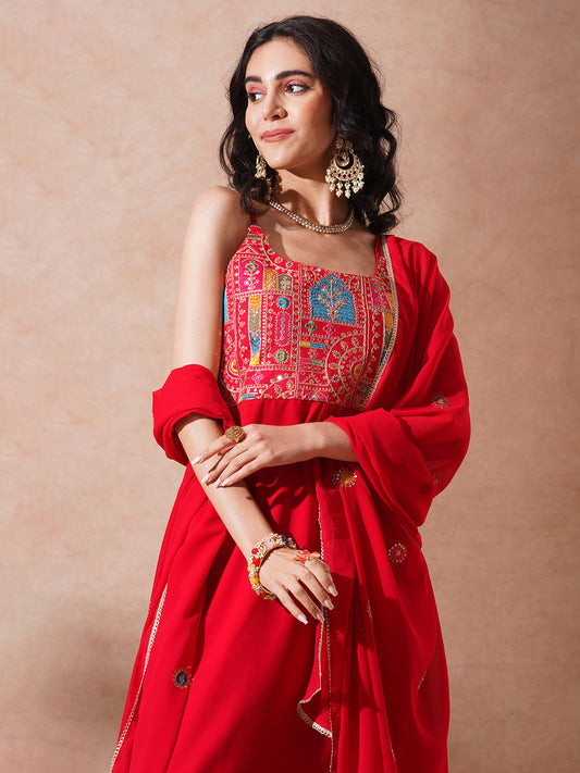 MRP (Inclusive of all taxes)Regular price ₹ 4,249.00₹ 4,249.00 Regular priceUnit price / per₹ 10,699.00Sale priceM L XL 2XL add to cartSale{"id":7682371485782,"title":"Festive Floral Printed \u0026 Embroidered \u0026 Anarkali With Sharara \u0026 Dupatta - Red","handle":"festive-floral-printed-embroidered-anarkali-with-sharara-dupatta-red","description":"\u003ch1\u003eHighlights\u003c\/h1\u003e\n\u003cp\u003e\u003cbr\u003e\u003cbr\u003e-Turn heads this festive season with this stunning Red Floral Printed Anarkali Set. Crafted from soft georgette, the Anarkali features intricate beadwork for a touch of sparkle. Paired with a flared Sharara for graceful movement and a beautifully printed dupatta, this ensemble is perfect for celebrations that call for elegance with a hint of glam.\u003c\/p\u003e\n\u003ch1\u003e\n\u003cbr\u003eFabric \u0026amp; Colour\u003c\/h1\u003e\n\u003cp\u003e\u003cbr\u003eTop Colour: Red\u003cbr\u003eTop Fabric: Georgette\u003cbr\u003eBottom Colour: Red\u003cbr\u003eBottom Fabric: Georgette\u003cbr\u003eDupatta Colour: Red\u003cbr\u003eDupatta Fabric: Georgette\u003c\/p\u003e\n\u003ch1\u003eSpecifications\u003c\/h1\u003e\n\u003cp\u003e\u003cbr\u003eTop Design: Floral print, Ethnic print\u003cbr\u003eTop Craft: Embroidery, Plain and Prints\u003cbr\u003eTop Shape: Anarkali\u003cbr\u003eNeck: Round Neck\u003cbr\u003eSleeve Length: Three-Quarter Sleeves\u003cbr\u003eTop Length: Knee Length\u003cbr\u003eHemline: Flared\u003cbr\u003e\u003c\/p\u003e\n\u003cp\u003eBottom Type: Sharara\u003cbr\u003eBottom Closure: Slip-On\u003cbr\u003eWaistband: Partially Elasticated\u003c\/p\u003e\n\u003cp\u003eDupatta Pattern: Printed\u003cbr\u003eDupatta Border: Printed\u003c\/p\u003e\n\u003cp\u003eWash Care: Hand Wash\u003c\/p\u003e\n\u003cp\u003eLength (in inches)\u003cbr\u003eKurta – 40, Sleeves – 18,\u003cbr\u003eBottom – 42\u003c\/p\u003e\n\u003cp\u003eModel’s Height: 5’7”. Wearing Size S.\u003c\/p\u003e\n\u003ch1\u003eProduct Information\u003c\/h1\u003e\n\u003cp\u003e\u003cbr\u003eManufactured\/Packed\/Marketed By:\u003cbr\u003eFashor Lifestyle Pvt. Ltd.\u003cbr\u003e28\/30, Sudarshanpura Industrial Area,\u003cbr\u003eJaipur - 302006.\u003cbr\u003eCountry of Origin: India\u003c\/p\u003e","published_at":"2025-12-04T11:31:35+05:30","created_at":"2025-10-22T11:54:06+05:30","vendor":"FASHOR","type":"3P Kurta Set","tags":["2XL","33142","above-3000","All Styles","casualwear","colour_red","craft_embroidery","craft_plain-and-prints","design_ethnic-print","design_floral-print","fabric_georgette","festivewear","KURTI","kurtis","L","M","meta-size-chart-","now-trending","rakhi","shape_anarkali","XL"],"price":424900,"price_min":424900,"price_max":424900,"available":true,"price_varies":false,"compare_at_price":1069900,"compare_at_price_min":1069900,"compare_at_price_max":1069900,"compare_at_price_varies":false,"variants":[{"id":43498234019926,"title":"M","option1":"M","option2":null,"option3":null,"sku":"38-ST033142I5FS","requires_shipping":true,"taxable":false,"featured_image":{"id":35431475118166,"product_id":7682371485782,"position":3,"created_at":"2025-10-22T11:54:43+05:30","updated_at":"2025-10-22T11:55:26+05:30","alt":null,"width":1080,"height":1440,"src":"\/\/fashor.com\/cdn\/shop\/files\/32496_2.jpg?v=1761114326","variant_ids":[43498234019926,43498234052694,43498234085462,43498234118230]},"available":true,"name":"Festive Floral Printed \u0026 Embroidered \u0026 Anarkali With Sharara \u0026 Dupatta - Red - M","public_title":"M","options":["M"],"price":424900,"weight":0,"compare_at_price":1069900,"inventory_quantity":1,"inventory_management":"shopify","inventory_policy":"deny","barcode":"","featured_media":{"alt":null,"id":27537116856406,"position":3,"preview_image":{"aspect_ratio":0.75,"height":1440,"width":1080,"src":"\/\/fashor.com\/cdn\/shop\/files\/32496_2.jpg?v=1761114326"}},"requires_selling_plan":false,"selling_plan_allocations":[],"quantity_rule":{"min":1,"max":null,"increment":1}},{"id":43498234052694,"title":"L","option1":"L","option2":null,"option3":null,"sku":"40-ST033142I5FS","requires_shipping":true,"taxable":false,"featured_image":{"id":35431475118166,"product_id":7682371485782,"position":3,"created_at":"2025-10-22T11:54:43+05:30","updated_at":"2025-10-22T11:55:26+05:30","alt":null,"width":1080,"height":1440,"src":"\/\/fashor.com\/cdn\/shop\/files\/32496_2.jpg?v=1761114326","variant_ids":[43498234019926,43498234052694,43498234085462,43498234118230]},"available":true,"name":"Festive Floral Printed \u0026 Embroidered \u0026 Anarkali With Sharara \u0026 Dupatta - Red - L","public_title":"L","options":["L"],"price":424900,"weight":0,"compare_at_price":1069900,"inventory_quantity":4,"inventory_management":"shopify","inventory_policy":"deny","barcode":"","featured_media":{"alt":null,"id":27537116856406,"position":3,"preview_image":{"aspect_ratio":0.75,"height":1440,"width":1080,"src":"\/\/fashor.com\/cdn\/shop\/files\/32496_2.jpg?v=1761114326"}},"requires_selling_plan":false,"selling_plan_allocations":[],"quantity_rule":{"min":1,"max":null,"increment":1}},{"id":43498234085462,"title":"XL","option1":"XL","option2":null,"option3":null,"sku":"42-ST033142I5FS","requires_shipping":true,"taxable":false,"featured_image":{"id":35431475118166,"product_id":7682371485782,"position":3,"created_at":"2025-10-22T11:54:43+05:30","updated_at":"2025-10-22T11:55:26+05:30","alt":null,"width":1080,"height":1440,"src":"\/\/fashor.com\/cdn\/shop\/files\/32496_2.jpg?v=1761114326","variant_ids":[43498234019926,43498234052694,43498234085462,43498234118230]},"available":true,"name":"Festive Floral Printed \u0026 Embroidered \u0026 Anarkali With Sharara \u0026 Dupatta - Red - XL","public_title":"XL","options":["XL"],"price":424900,"weight":0,"compare_at_price":1069900,"inventory_quantity":3,"inventory_management":"shopify","inventory_policy":"deny","barcode":"","featured_media":{"alt":null,"id":27537116856406,"position":3,"preview_image":{"aspect_ratio":0.75,"height":1440,"width":1080,"src":"\