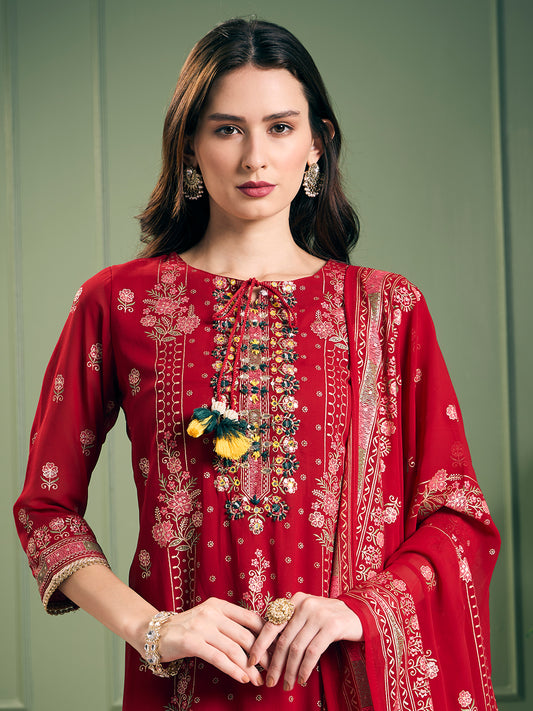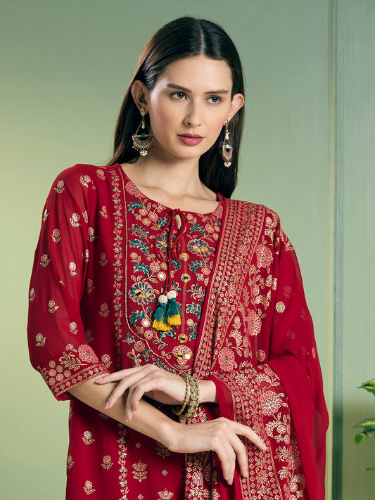 Festive Ethnic Printed Embroidered Straight Kurta with...
