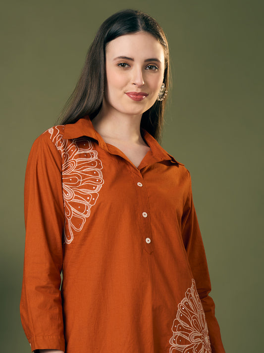 Solid Floral Embroidered A-Line Co-ord Set -...