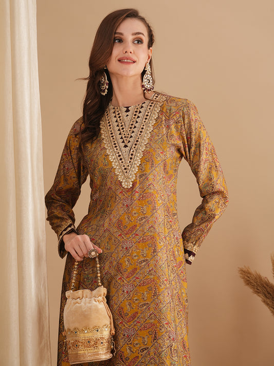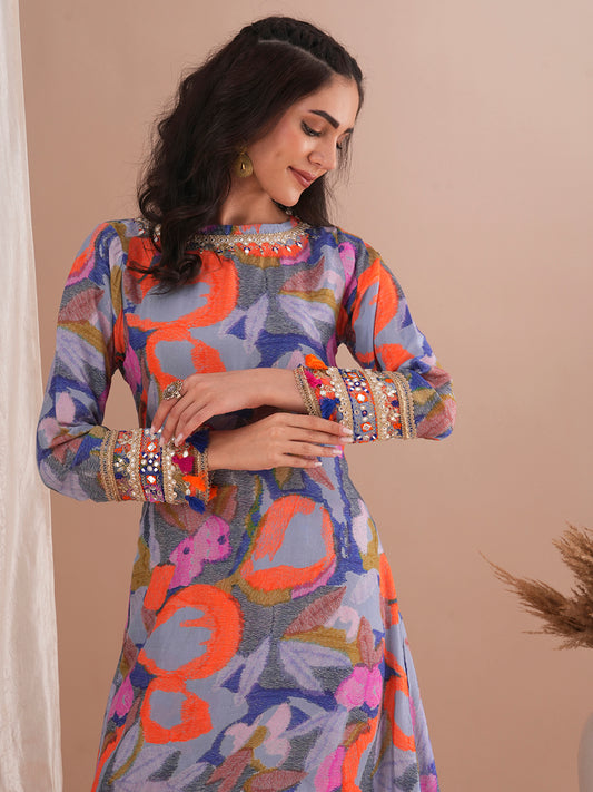 Ethnic Floral Printed & Embroidered Straight Kurta...