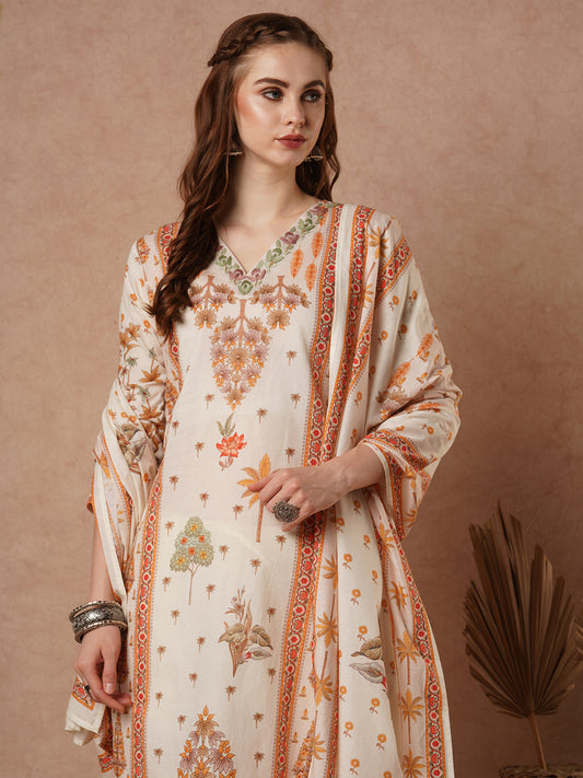 Ethnic Floral Printed Straight Fit Kurta with...