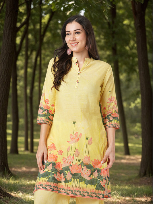 Solid Lotus Printed Straight Fit Co-ord Set...