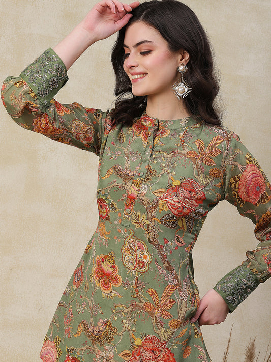 Ethnic Chevron Printed A-Line Short Kurti -...