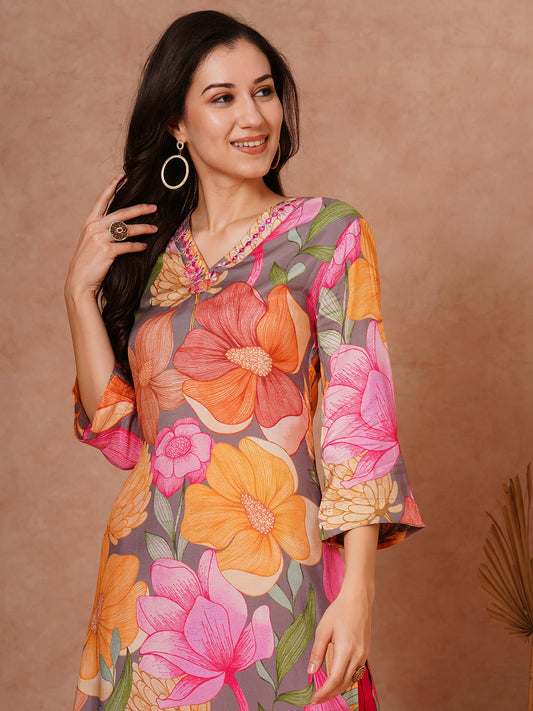 Ethnic Printed & Embroidered Straight Fit Kurta...