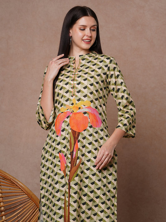 Ethnic Printed & Embroidered Straight Fit Kurta...