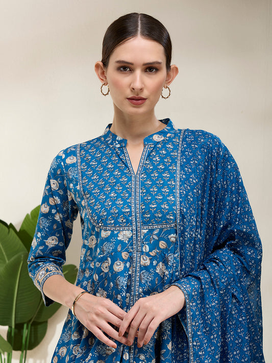 MRP (Inclusive of all taxes)Regular price ₹ 2,599.00₹ 2,599.00 Regular priceUnit price / per₹ 7,799.00Sale priceM L XL 2XL add to cartSale{"id":7685553258582,"title":"Ethnic Floral Printed A-Line Kurta with Pant \u0026 Dupatta - Blue","handle":"ethnic-floral-printed-a-line-kurta-with-pant-dupatta-blue","description":"\u003ch1\u003eHighlights\u003c\/h1\u003e\n\u003cp\u003e\u003cbr\u003e\u003cbr\u003e-Step into effortless tradition with this Blue A-Line Kurta set, adorned with ethnic floral prints and delicate sequin highlights on the yoke. Made from breathable cotton and styled with a classic mandarin collar, it comes with matching pants and a dupatta—perfect for festive days or casual elegance.\u003c\/p\u003e\n\u003ch1\u003e\n\u003cbr\u003eFabric \u0026amp; Colour\u003c\/h1\u003e\n\u003cp\u003e\u003cbr\u003eTop Colour: Blue\u003cbr\u003eTop Fabric: Cotton\u003cbr\u003eBottom Colour: Blue\u003cbr\u003eBottom Fabric: Cotton Blend\u003cbr\u003eDupatta Colour: Blue\u003cbr\u003eDupatta Fabric: Cotton Blend\u003c\/p\u003e\n\u003ch1\u003eSpecifications\u003c\/h1\u003e\n\u003cp\u003e\u003cbr\u003eTop Design: Floral print, Ethnic print\u003cbr\u003eTop Craft: Embroidery, Plain and Prints\u003cbr\u003eTop Shape: A-line\u003cbr\u003eNeck: Mandarin Collar\u003cbr\u003eSleeve Length: Three-Quarter Sleeves\u003cbr\u003eTop Length: Calf Length\u003cbr\u003eHemline: Flared\u003cbr\u003e\u003c\/p\u003e\n\u003cp\u003eBottom Type: Trousers\u003cbr\u003eBottom Closure: Slip-On\u003cbr\u003eWaistband: Elasticated\u003c\/p\u003e\n\u003cp\u003eDupatta Pattern: Printed\u003cbr\u003eDupatta Border: Printed\u003c\/p\u003e\n\u003cp\u003eWash Care: Hand Wash\u003c\/p\u003e\n\u003cp\u003eLength (in inches)\u003cbr\u003eKurta – 47, Sleeves – 17,\u003cbr\u003eBottom – 44\u003c\/p\u003e\n\u003cp\u003eModel’s Height: 5’7”. Wearing Size S.\u003c\/p\u003e\n\u003ch1\u003eProduct Information\u003c\/h1\u003e\n\u003cp\u003e\u003cbr\u003eManufactured\/Packed\/Marketed By:\u003cbr\u003eFashor Lifestyle Pvt. Ltd.\u003cbr\u003e28\/30, Sudarshanpura Industrial Area,\u003cbr\u003eJaipur - 302006.\u003cbr\u003eCountry of Origin: India\u003c\/p\u003e","published_at":"2025-10-24T15:06:47+05:30","created_at":"2025-10-24T14:21:28+05:30","vendor":"FASHOR","type":"3P Kurta Set","tags":["2001-3000","2XL","31082","above-3000","All Styles","casualwear","colour_blue","craft_embroidery","craft_plain-and-prints","design_ethnic-print","design_floral-print","fabric_cotton","KURTI","kurtis","L","M","meta-size-chart-","now-trending","offer-zone","shape_a-line","XL"],"price":259900,"price_min":259900,"price_max":259900,"available":true,"price_varies":false,"compare_at_price":779900,"compare_at_price_min":779900,"compare_at_price_max":779900,"compare_at_price_varies":false,"variants":[{"id":43508459896918,"title":"M","option1":"M","option2":null,"option3":null,"sku":"38-ST031082E5FS","requires_shipping":true,"taxable":false,"featured_image":{"id":35448322359382,"product_id":7685553258582,"position":3,"created_at":"2025-10-24T14:22:00+05:30","updated_at":"2025-10-24T14:22:44+05:30","alt":null,"width":1080,"height":1440,"src":"\/\/fashor.com\/cdn\/shop\/files\/32530_1.jpg?v=1761295964","variant_ids":[43508459896918,43508459929686,43508459962454,43508459995222]},"available":true,"name":"Ethnic Floral Printed A-Line Kurta with Pant \u0026 Dupatta - Blue - M","public_title":"M","options":["M"],"price":259900,"weight":0,"compare_at_price":779900,"inventory_quantity":4,"inventory_management":"shopify","inventory_policy":"deny","barcode":"","featured_media":{"alt":null,"id":27553276362838,"position":3,"preview_image":{"aspect_ratio":0.75,"height":1440,"width":1080,"src":"\/\/fashor.com\/cdn\/shop\/files\/32530_1.jpg?v=1761295964"}},"requires_selling_plan":false,"selling_plan_allocations":[],"quantity_rule":{"min":1,"max":null,"increment":1}},{"id":43508459929686,"title":"L","option1":"L","option2":null,"option3":null,"sku":"40-ST031082E5FS","requires_shipping":true,"taxable":false,"featured_image":{"id":35448322359382,"product_id":7685553258582,"position":3,"created_at":"2025-10-24T14:22:00+05:30","updated_at":"2025-10-24T14:22:44+05:30","alt":null,"width":1080,"height":1440,"src":"\/\/fashor.com\/cdn\/shop\/files\/32530_1.jpg?v=1761295964","variant_ids":[43508459896918,43508459929686,43508459962454,43508459995222]},"available":true,"name":"Ethnic Floral Printed A-Line Kurta with Pant \u0026 Dupatta - Blue - L","public_title":"L","options":["L"],"price":259900,"weight":0,"compare_at_price":779900,"inventory_quantity":6,"inventory_management":"shopify","inventory_policy":"deny","barcode":"","featured_media":{"alt":null,"id":27553276362838,"position":3,"preview_image":{"aspect_ratio":0.75,"height":1440,"width":1080,"src":"\/\/fashor.com\/cdn\/shop\/files\/32530_1.jpg?v=1761295964"}},"requires_selling_plan":false,"selling_plan_allocations":[],"quantity_rule":{"min":1,"max":null,"increment":1}},{"id":43508459962454,"title":"XL","option1":"XL","option2":null,"option3":null,"sku":"42-ST031082E5FS","requires_shipping":true,"taxable":false,"featured_image":{"id":35448322359382,"product_id":7685553258582,"position":3,"created_at":"2025-10-24T14:22:00+05:30","updated_at":"2025-10-24T14:22:44+05:30","alt":null,"width":1080,"height":1440,"src":"\/\/fashor.com\/cdn\/shop\/files\/32530_1.jpg?v=1761295964","variant_ids":[43508459896918,43508459929686,43508459962454,43508459995222]},"available":true,"name":"Ethnic Floral Printed A-Line Kurta with Pant \u0026 Dupatta - Blue - XL","public_title":"XL","options":["XL"],"price":259900,"weight":0,"compare_at_price":779900,"inventory_quantity":6,"inventory_management":"shopify","inventory_policy":"deny","barcode":"","featured_media":{"alt":null,"id":27553276362838,"position":3,"preview_image":{"aspect_ratio":0.75,"height":1440,"width":1080,"src":"\/\/fashor.com\/cdn\/shop\/files\/32530_1.jpg?v=1761295964"}},"requires_selling_plan":false,"selling_plan_allocations":[],"quantity_rule":{"min":1,"max":null,"increme
