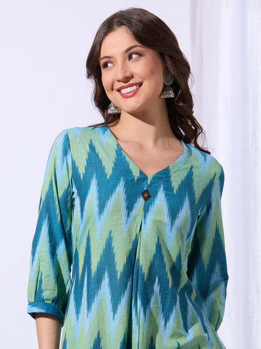 Ethnic Ikat Printed A-Line Flared Co-ord Set...