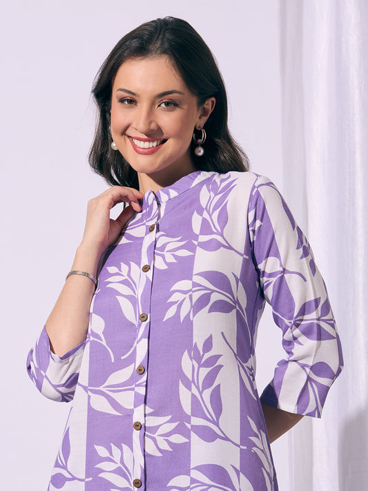Abstract Floral Printed A-Line Flared Kurta -...