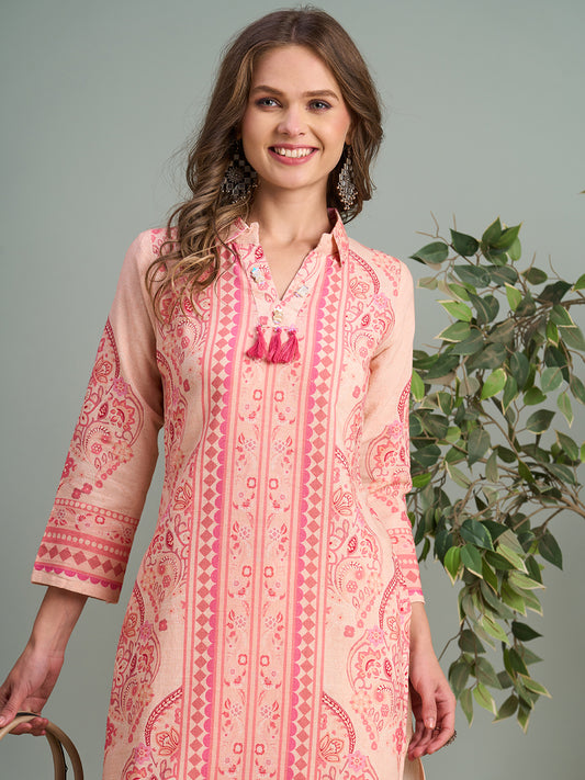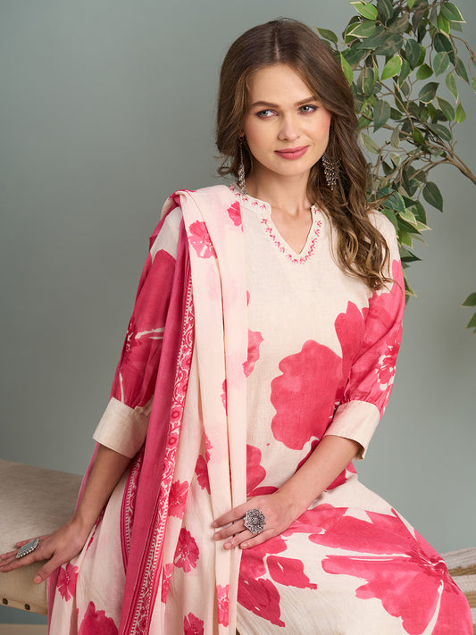 Ethnic Pastel Floral Printed Straight Kurta with...