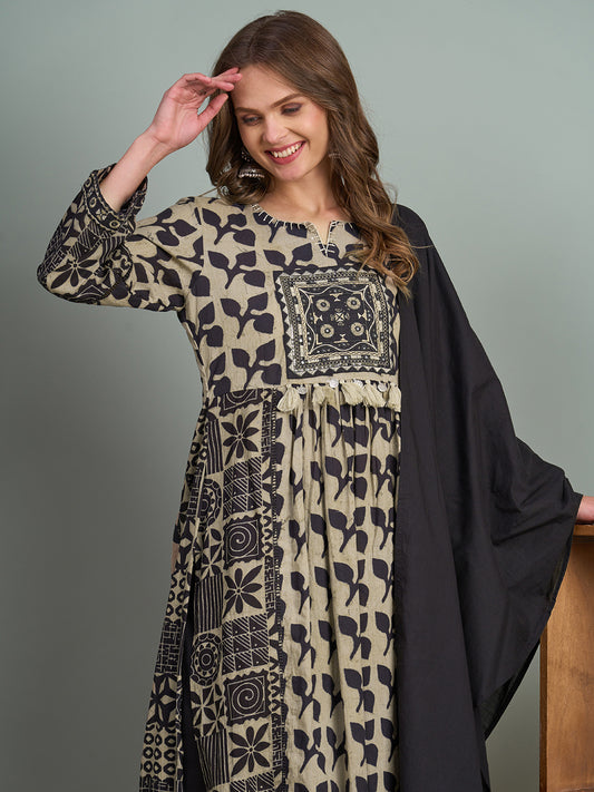Ethnic Printed Anarkali Flared Kurta with Embroidered...