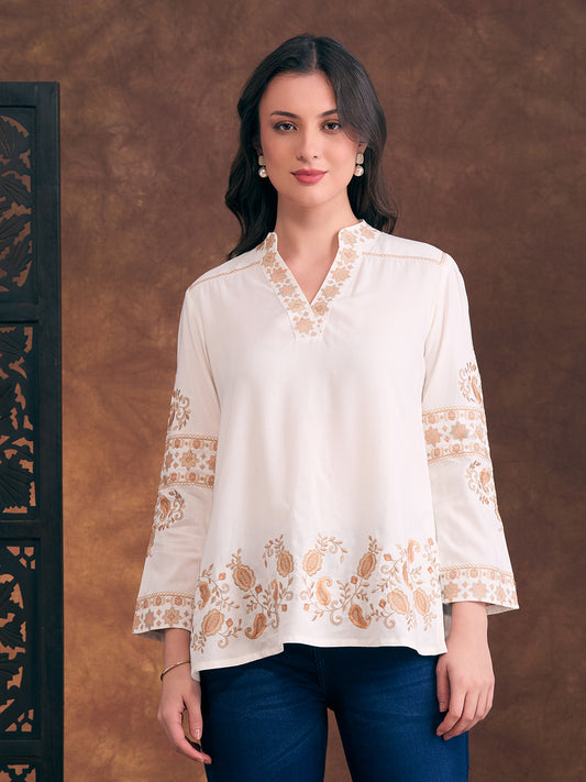 Ethnic Floral Printed A-Line Paneled Kurti -...