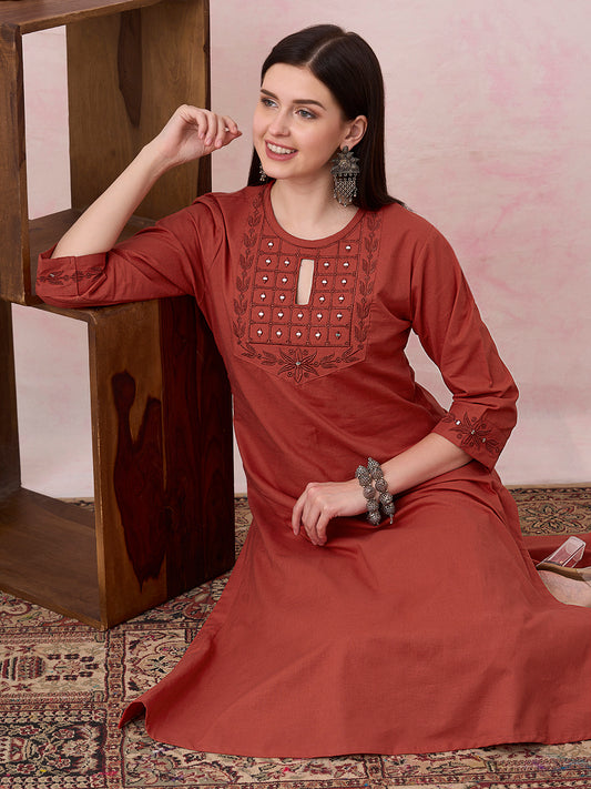 MRP (Inclusive of all taxes)Regular price ₹ 1,549.00₹ 1,549.00 Regular priceUnit price / per₹ 4,299.00Sale priceM L XL 2XL add to cartSale{"id":7584382877782,"title":"Solid Floral Embroidered A-Line Flared Co-ord Set - Rust","handle":"solid-floral-embroidered-a-line-flared-co-ord-set-rust","description":"\u003ch1\u003eHighlights\u003c\/h1\u003e\n\u003cp\u003e\u003cbr\u003e-Radiate understated elegance in this Rust Solid A-Line Flared Co-ord Set. Featuring delicate tonal floral threadwork and mirror work embroidery at the front, the round neckline adds a classic touch. The graceful flared silhouette pairs seamlessly with solid pants, making it a perfect pick for festive brunches or evening soirees.\u003c\/p\u003e\n\u003ch1\u003eFabric \u0026amp; Colour\u003c\/h1\u003e\n\u003cp\u003e\u003cbr\u003eTop Colour: Rust\u003cbr\u003eTop Fabric: Cotton\u003cbr\u003eBottom Colour: Rust\u003cbr\u003eBottom Fabric: Cotton Blend\u003c\/p\u003e\n\u003ch1\u003eSpecifications\u003c\/h1\u003e\n\u003cp\u003e\u003cbr\u003eTop Design: Solid\u003cbr\u003eTop Craft: Embroidery, Plain and Prints\u003cbr\u003eTop Shape: A-line\u003cbr\u003eNeck: Round Neck\u003cbr\u003eSleeve Length: Three-Quarter Sleeves\u003cbr\u003eTop Length: Calf Length\u003cbr\u003eHemline: Flared\u003cbr\u003eSlit: Side Slits\u003c\/p\u003e\n\u003cp\u003eBottom Type: Trousers\u003cbr\u003eBottom Closure: Slip-On\u003cbr\u003eWaistband: Partially Elasticated\u003c\/p\u003e\n\u003cp\u003eWash Care: Hand Wash\u003c\/p\u003e\n\u003cp\u003eLength (in inches)\u003cbr\u003eKurta – 46, Sleeves – 17,\u003cbr\u003eBottom - 40\u003c\/p\u003e\n\u003cp\u003eModel’s Height: 5’7”. Wearing Size S.\u003c\/p\u003e\n\u003ch1\u003eProduct Information\u003c\/h1\u003e\n\u003cp\u003e\u003cbr\u003eManufactured\/Packed\/Marketed By:\u003cbr\u003eFashor Lifestyle Pvt. Ltd.\u003cbr\u003e28\/30, Sudarshanpura Industrial Area,\u003cbr\u003eJaipur - 302006.\u003cbr\u003eCountry of Origin: India\u003c\/p\u003e","published_at":"2025-11-17T09:53:26+05:30","created_at":"2025-07-01T14:47:15+05:30","vendor":"FASHOR","type":"2P Kurta Set","tags":["1001-2000","30567","All Styles","casualwear","co-ord","colour_rust","craft_embroidery","craft_plain-and-prints","design_solid","discount-zone","fabric_cotton","KURTI","kurtis","M","meta-size-chart-","now-trending","offer-zone","shape_a-line","workwear"],"price":154900,"price_min":154900,"price_max":154900,"available":true,"price_varies":false,"compare_at_price":429900,"compare_at_price_min":429900,"compare_at_price_max":429900,"compare_at_price_varies":false,"variants":[{"id":42438780125270,"title":"M","option1":"M","option2":null,"option3":null,"sku":"38-KB030567C5FS","requires_shipping":true,"taxable":false,"featured_image":{"id":34632216805462,"product_id":7584382877782,"position":3,"created_at":"2025-07-01T14:48:06+05:30","updated_at":"2025-07-01T14:48:56+05:30","alt":null,"width":1080,"height":1440,"src":"\/\/fashor.com\/cdn\/shop\/files\/31354_7.jpg?v=1751361536","variant_ids":[42438780125270,42438780158038,42438780190806,42438780223574]},"available":true,"name":"Solid Floral Embroidered A-Line Flared Co-ord Set - Rust - M","public_title":"M","options":["M"],"price":154900,"weight":0,"compare_at_price":429900,"inventory_quantity":2,"inventory_management":"shopify","inventory_policy":"deny","barcode":"","featured_media":{"alt":null,"id":26912477511766,"position":3,"preview_image":{"aspect_ratio":0.75,"height":1440,"width":1080,"src":"\/\/fashor.com\/cdn\/shop\/files\/31354_7.jpg?v=1751361536"}},"requires_selling_plan":false,"selling_plan_allocations":[],"quantity_rule":{"min":1,"max":null,"increment":1}},{"id":42438780158038,"title":"L","option1":"L","option2":null,"option3":null,"sku":"40-KB030567C5FS","requires_shipping":true,"taxable":false,"featured_image":{"id":34632216805462,"product_id":7584382877782,"position":3,"created_at":"2025-07-01T14:48:06+05:30","updated_at":"2025-07-01T14:48:56+05:30","alt":null,"width":1080,"height":1440,"src":"\/\/fashor.com\/cdn\/shop\/files\/31354_7.jpg?v=1751361536","variant_ids":[42438780125270,42438780158038,42438780190806,42438780223574]},"available":false,"name":"Solid Floral Embroidered A-Line Flared Co-ord Set - Rust - L","public_title":"L","options":["L"],"price":154900,"weight":0,"compare_at_price":429900,"inventory_quantity":0,"inventory_management":"shopify","inventory_policy":"deny","barcode":"","featured_media":{"alt":null,"id":26912477511766,"position":3,"preview_image":{"aspect_ratio":0.75,"height":1440,"width":1080,"src":"\/\/fashor.com\/cdn\/shop\/files\/31354_7.jpg?v=1751361536"}},"requires_selling_plan":false,"selling_plan_allocations":[],"quantity_rule":{"min":1,"max":null,"increment":1}},{"id":42438780190806,"title":"XL","option1":"XL","option2":null,"option3":null,"sku":"42-KB030567C5FS","requires_shipping":true,"taxable":false,"featured_image":{"id":34632216805462,"product_id":7584382877782,"position":3,"created_at":"2025-07-01T14:48:06+05:30","updated_at":"2025-07-01T14:48:56+05:30","alt":null,"width":1080,"height":1440,"src":"\/\/fashor.com\/cdn\/shop\/files\/31354_7.jpg?v=1751361536","variant_ids":[42438780125270,42438780158038,42438780190806,42438780223574]},"available":false,"name":"Solid Floral Embroidered A-Line Flared Co-ord Set - Rust - XL","public_title":"XL","options":["XL"],"price":154900,"weight":0,"compare_at_price":429900,"inventory_quantity":0,"inventory_management":"shopify","inventory_policy":"deny","barcode":"","featured_media":{"alt":null,"id":26912477511766,"position":3,"preview_image":{"aspect_ratio":0.75,"height":1440,"width":1080,"src":"\/\/fashor.com\/cdn\/shop\/files\/31354_7.jpg?v=1751361536"}},"requires_selling_plan":false,"selling_plan_allocations":[],"quantity_rule":{"min":1,"max":null,"increment":1}},{"id":42438780223574,"title":"2XL","option1":"2XL","option2":null,"option3":null,"sku":"44-KB030567C5FS","requires_shipping":true,"taxable":false,"featured_image":{"id":34632216805462,"product_id":7584382877782,"position":3,"