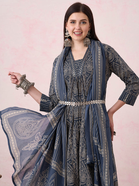 Ethnic Printed & Hand Embroidered Anarkali Flared...