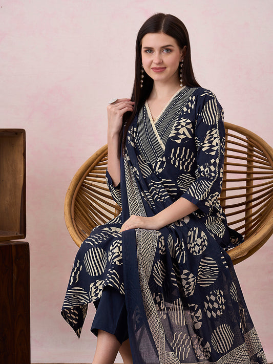 Abstract Printed A-Line Kurta with Pant &...