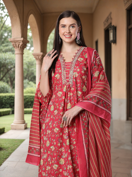 Ethnic Floral Printed & Embroidered Anarkali Flared...