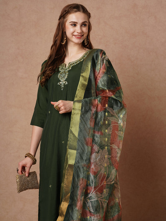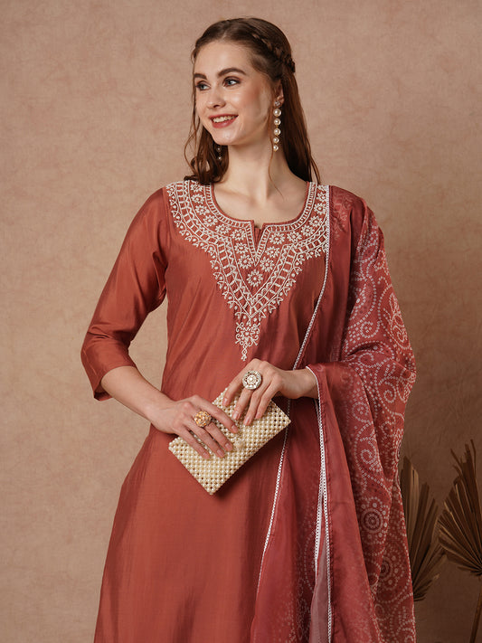 Ethnic Embroidered Straight Cut Kurta with Pant...