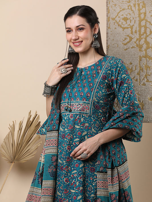 Abstract Floral & Chevron Printed Anarkali Flared...