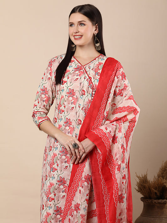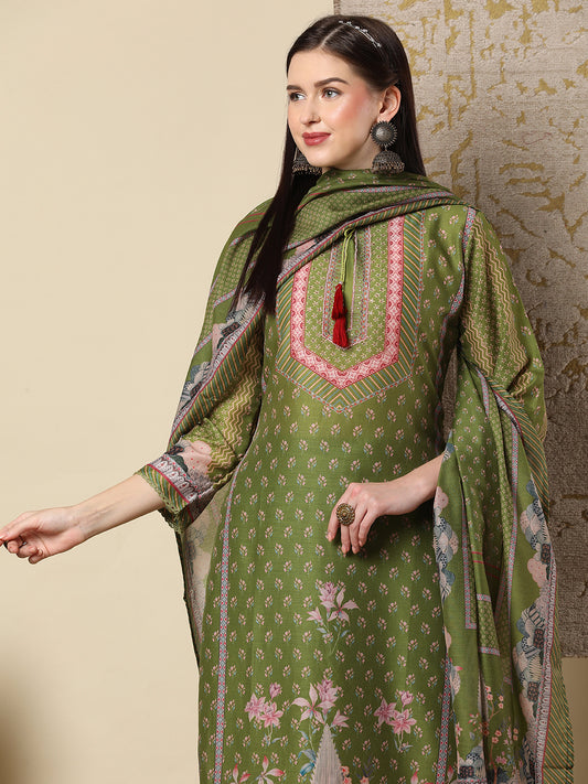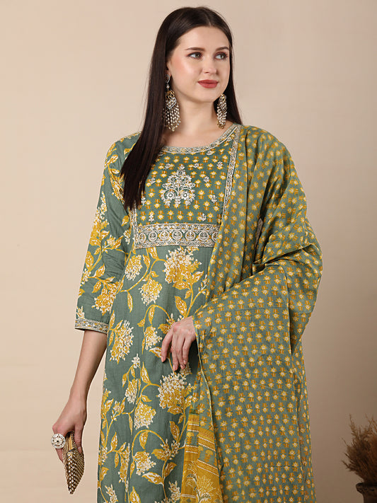 Ethnic Floral Printed & Dori Embroidered Straight...