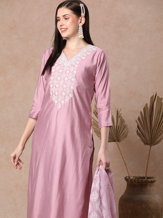 Ethnic Embroidered Straight Cut Kurta with Pant...