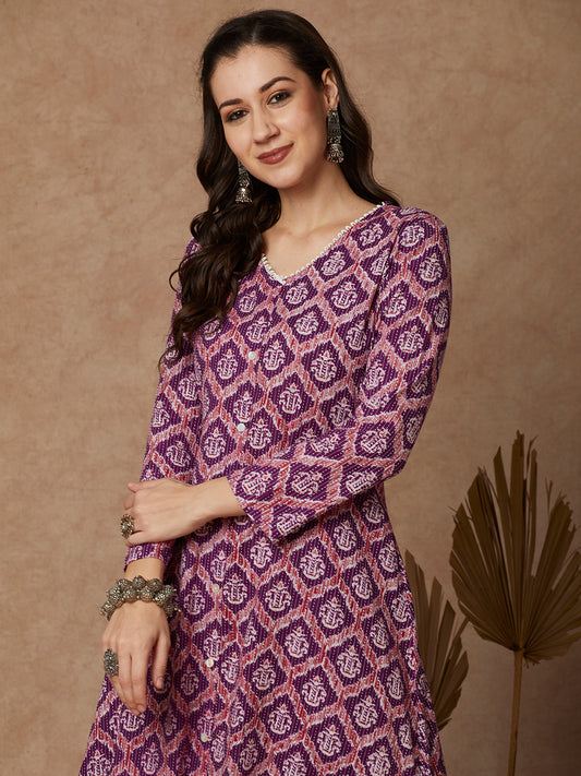 Ethnic Printed & Embroidered Kaftan Kurta with...