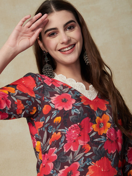 Floral & Abstract Printed Bishop Sleeves Flared...