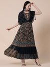 Floral Printed Sequins & Resham Embroidered Maxi Dress - Green
