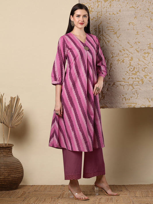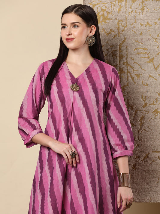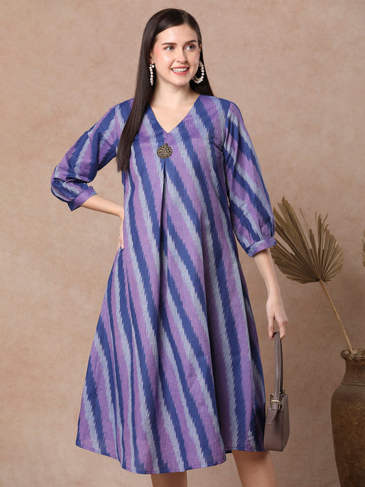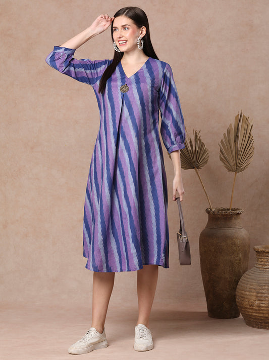Graphic Stripes Printed A-Line Flared Midi Dress...