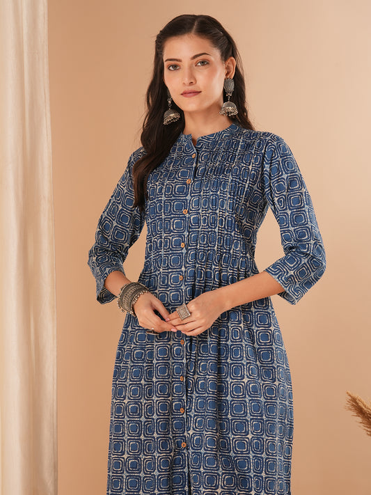 MRP (Inclusive of all taxes)Regular price ₹ 649.00₹ 649.00 Regular priceUnit price / per₹ 2,699.00Sale priceM L XL 2XL 3XL add to cartSale{"id":7517621944406,"title":"Ethnic Geometric Printed A-Line Pleated Midi Flared Dress - Blue","handle":"ethnic-geometric-printed-a-line-pleated-midi-flared-dress-blue","description":"\u003ch1\u003eHighlights\u003c\/h1\u003e\n\u003cp\u003e\u003cbr\u003e-A-Line Pleated Midi Flared Dress\u003cbr\u003e-Ethnic Geometric Prints all over\u003cbr\u003e-Mandarin Collar\u003c\/p\u003e\n\u003ch1\u003eFabric \u0026amp; Colour\u003c\/h1\u003e\n\u003cp\u003e\u003cbr\u003eColour: Blue\u003cbr\u003eFabric: Cotton\u003c\/p\u003e\n\u003ch1\u003eSpecifications\u003c\/h1\u003e\n\u003cp\u003e\u003cbr\u003eDesign: Floral print, Ethnic print\u003cbr\u003eCraft: Plain and Prints\u003cbr\u003eShape: A-line\u003cbr\u003eNeck: Mandarin Collar\u003cbr\u003eSleeve Length: Three-Quarter Sleeves\u003cbr\u003eTop Length: Knee Length\u003cbr\u003eHemline: Flared\u003cbr\u003e\u003c\/p\u003e\n\u003cp\u003eWash Care: Hand Wash\u003c\/p\u003e\n\u003cp\u003eLength (in inches)\u003cbr\u003eDress – 45, Sleeves – 17\u003c\/p\u003e\n\u003cp\u003eModel’s Height: 5’7”. Wearing Size S.\u003c\/p\u003e\n\u003ch1\u003eProduct Information\u003c\/h1\u003e\n\u003cp\u003e\u003cbr\u003eManufactured\/Packed\/Marketed By:\u003cbr\u003eFashor Lifestyle Pvt. Ltd.\u003cbr\u003e28\/30, Sudarshanpura Industrial Area,\u003cbr\u003eJaipur - 302006.\u003cbr\u003eCountry of Origin: India\u003c\/p\u003e","published_at":"2025-10-30T07:26:11+05:30","created_at":"2025-02-26T14:46:53+05:30","vendor":"FASHOR","type":"Dresses","tags":["1001-2000","29398","All Styles","casualwear","colour_blue","craft_plain-and-prints","design_ethnic-print","design_floral-print","fabric_cotton","KURTI","kurtis","M","meta-size-chart-","monsoo","now-trending","offer-zone","shape_a-line","under-1000","workwear"],"price":64900,"price_min":64900,"price_max":64900,"available":true,"price_varies":false,"compare_at_price":269900,"compare_at_price_min":269900,"compare_at_price_max":269900,"compare_at_price_varies":false,"variants":[{"id":42151086260310,"title":"M","option1":"M","option2":null,"option3":null,"sku":"38-DR029398B5FS","requires_shipping":true,"taxable":false,"featured_image":{"id":34116937285718,"product_id":7517621944406,"position":3,"created_at":"2025-02-26T14:47:18+05:30","updated_at":"2025-06-09T18:53:04+05:30","alt":null,"width":1080,"height":1440,"src":"\/\/fashor.com\/cdn\/shop\/files\/29760_7.jpg?v=1749475384","variant_ids":[42151086260310,42151086293078,42151086325846,42151086358614,42151086391382]},"available":true,"name":"Ethnic Geometric Printed A-Line Pleated Midi Flared Dress - Blue - M","public_title":"M","options":["M"],"price":64900,"weight":0,"compare_at_price":269900,"inventory_quantity":1,"inventory_management":"shopify","inventory_policy":"deny","barcode":null,"featured_media":{"alt":null,"id":26546542641238,"position":3,"preview_image":{"aspect_ratio":0.75,"height":1440,"width":1080,"src":"\/\/fashor.com\/cdn\/shop\/files\/29760_7.jpg?v=1749475384"}},"requires_selling_plan":false,"selling_plan_allocations":[],"quantity_rule":{"min":1,"max":null,"increment":1}},{"id":42151086293078,"title":"L","option1":"L","option2":null,"option3":null,"sku":"40-DR029398B5FS","requires_shipping":true,"taxable":false,"featured_image":{"id":34116937285718,"product_id":7517621944406,"position":3,"created_at":"2025-02-26T14:47:18+05:30","updated_at":"2025-06-09T18:53:04+05:30","alt":null,"width":1080,"height":1440,"src":"\/\/fashor.com\/cdn\/shop\/files\/29760_7.jpg?v=1749475384","variant_ids":[42151086260310,42151086293078,42151086325846,42151086358614,42151086391382]},"available":false,"name":"Ethnic Geometric Printed A-Line Pleated Midi Flared Dress - Blue - L","public_title":"L","options":["L"],"price":64900,"weight":0,"compare_at_price":269900,"inventory_quantity":0,"inventory_management":"shopify","inventory_policy":"deny","barcode":null,"featured_media":{"alt":null,"id":26546542641238,"position":3,"preview_image":{"aspect_ratio":0.75,"height":1440,"width":1080,"src":"\/\/fashor.com\/cdn\/shop\/files\/29760_7.jpg?v=1749475384"}},"requires_selling_plan":false,"selling_plan_allocations":[],"quantity_rule":{"min":1,"max":null,"increment":1}},{"id":42151086325846,"title":"XL","option1":"XL","option2":null,"option3":null,"sku":"42-DR029398B5FS","requires_shipping":true,"taxable":false,"featured_image":{"id":34116937285718,"product_id":7517621944406,"position":3,"created_at":"2025-02-26T14:47:18+05:30","updated_at":"2025-06-09T18:53:04+05:30","alt":null,"width":1080,"height":1440,"src":"\/\/fashor.com\/cdn\/shop\/files\/29760_7.jpg?v=1749475384","variant_ids":[42151086260310,42151086293078,42151086325846,42151086358614,42151086391382]},"available":false,"name":"Ethnic Geometric Printed A-Line Pleated Midi Flared Dress - Blue - XL","public_title":"XL","options":["XL"],"price":64900,"weight":0,"compare_at_price":269900,"inventory_quantity":0,"inventory_management":"shopify","inventory_policy":"deny","barcode":null,"featured_media":{"alt":null,"id":26546542641238,"position":3,"preview_image":{"aspect_ratio":0.75,"height":1440,"width":1080,"src":"\/\/fashor.com\/cdn\/shop\/files\/29760_7.jpg?v=1749475384"}},"requires_selling_plan":false,"selling_plan_allocations":[],"quantity_rule":{"min":1,"max":null,"increment":1}},{"id":42151086358614,"title":"2XL","option1":"2XL","option2":null,"option3":null,"sku":"44-DR029398B5FS","requires_shipping":true,"taxable":false,"featured_image":{"id":34116937285718,"product_id":7517621944406,"position":3,"created_at":"2025-02-26T14:47:18+05:30","updated_at":"2025-06-09T18:53:04+05:30","alt":null,"width":1080,"height":1440,"src":"\/\/fashor.com\/cdn\/shop\/files\/29760_7.jpg?v=1749475384","variant_ids":[42151086260310,42151086293078,42151086325846,42151086358614,42151086391382]},"available":false,"name":"Ethnic Geometric Printed A-Line Pleated Midi Flared Dress - Blue - 2XL","public_title"