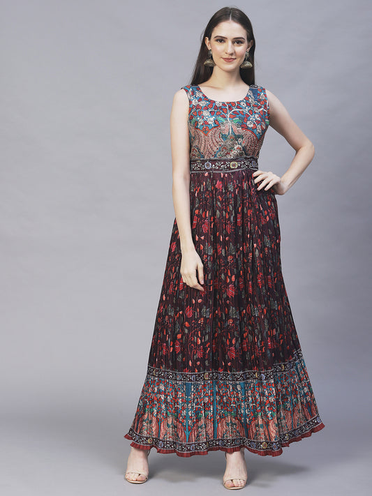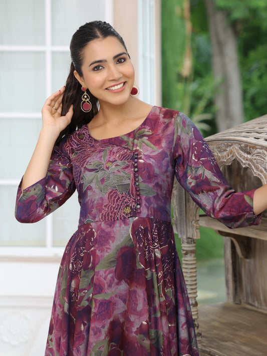 Ethnic Printed & Embroidered Anarkali Flared Midi...